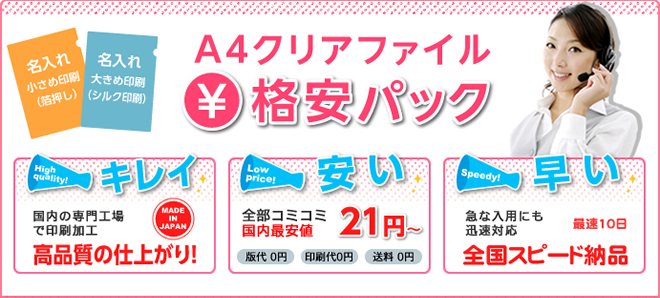 ≪送料無料≫クリアファイル名入れ製作、お得な格安パックのご案内