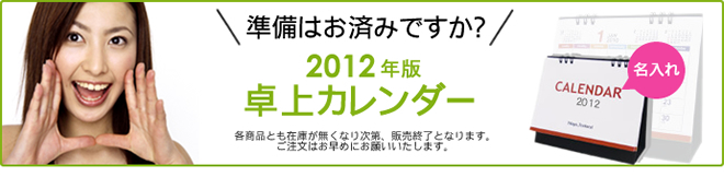 年末年始の販促ツールとして欠かせない「2012年卓上カレンダー」の販売価格を大幅に値下げしました。尚、既に在庫が残りわずかとなっている商品もございます。在庫品限りにつき、売れ切れの際はご容赦下さい。