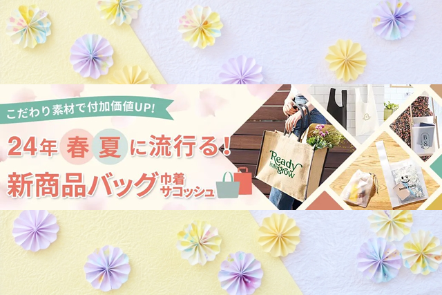 販促ノベルティ卸売りセンターではコットンなどの定番バッグの他に、24年春夏におすすめのジュート・EVA・コットンリネン・ライトウォッシュキャンバスなどのこだわり素材を使用した新商品バッグを大拡充しました!