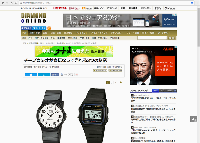 社長さんや店長さん、宣伝担当さん広報担当さんなど、ビジネスパーソンにオススメしたい今週の注目エントリーをご紹介/2016年10月11日版。トピック:チープカシオが宣伝なしで売れる3つの秘密
