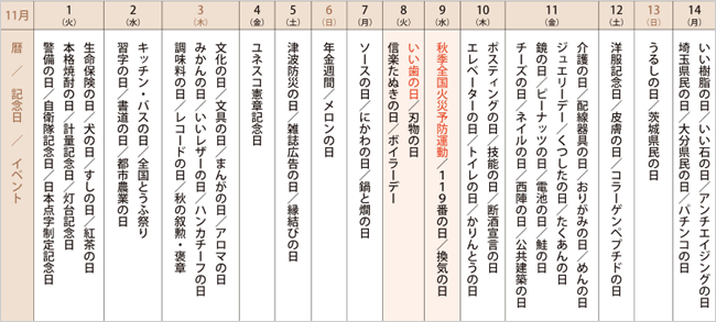 来月の記念日を調べてみました<2016年11月 前半&後半>