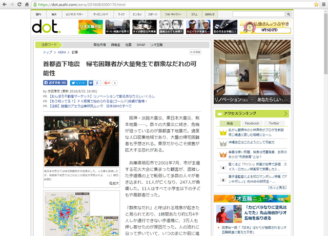 社長さん、店長さん、宣伝担当さん、ビジネスパーソンにオススメしたい必読すべき今週の注目エントリーをご紹介。トピック:首都直下地震 帰宅困難者が大量発生で群衆なだれの可能性