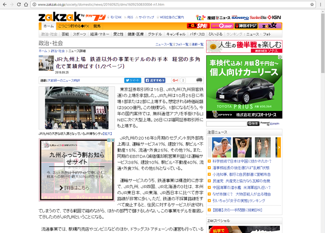 社長さんや店長さん、宣伝担当さん広報担当さんなど、ビジネスパーソンにオススメしたい今週の注目エントリーをご紹介/2016年9月19日版。トピック:【大前研一のニュース時評】JR九州上場 鉄道以外の事業モデルのお手本 経営の多角化で業績伸ばす