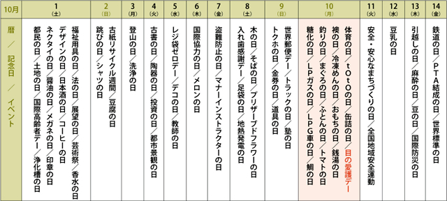 来月の記念日を調べてみました<2016年10月 前半&後半>