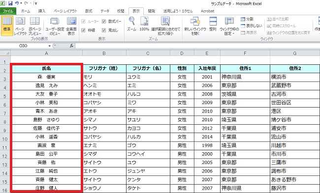 <エクセル> データの項目を固定しリストを見やすくするワザ