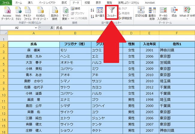 <エクセル> 特定データだけを絞り込む、便利なフィルタ機能