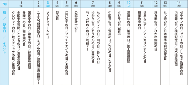 来月の記念日を調べてみました<2016年7月 前半&後半>