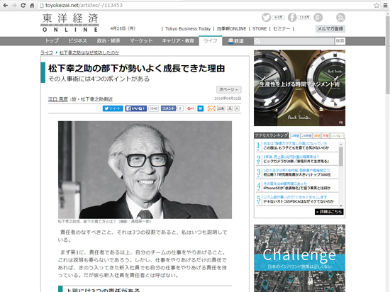 広報マーケティングやWEB担当者さん、中小企業の社長さんにオススメしたい、必読すべき今週の注目エントリーをご紹介。トピック:松下幸之助の部下が勢いよく成長できた理由 その人事術には4つのポイントがある
