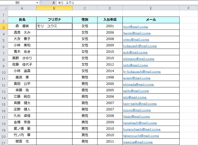 <エクセル> 氏名の隣に一瞬でふりがなを入力する便利ワザ