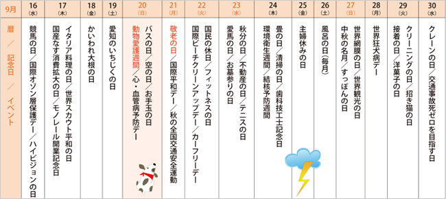 2015年9月の後半に実施される国民的イベントや記念日を調べてみました。企業や店舗、自治体の集客プロモーションや販促キャンペーンに記念日を活用しましょう。秋冬商戦、防災の日・敬老の日。秋の訪れを告げるフェア展開で来店促進。