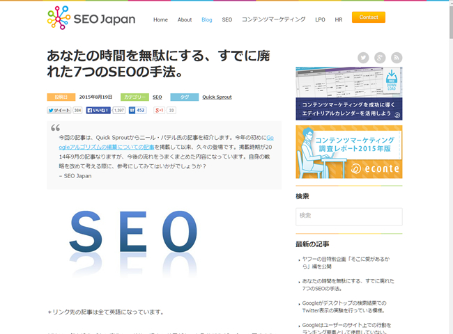 広報マーケティングやWEB担当者さん、中小企業の社長さんにオススメしたい、必読すべき今週の注目エントリーをご紹介。トピック:あなたの時間を無駄にする、すでに廃れた7つのSEOの手法。