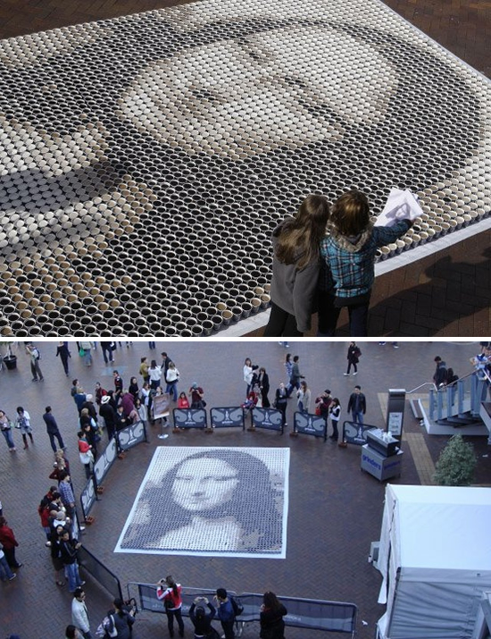 実用的な広告からネタっぽいものまで。面白いアイデアが盛り込まれたユニークな広告&看板を集めてみました。トピック:ロックスアロマフェスティバルでのゲリラマーケティング。コーヒーとミルクが注がれた3604杯のカップでモナリザを表現、13万人以上が参加するイベントを盛り上げたようです。<オーストラリア>