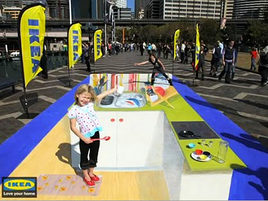 実用的な広告からネタっぽいものまで。面白いアイデアが盛り込まれたユニークな広告&看板を集めてみました。トピック:家具ショップ(イケア)の屋外広告。錯視と呼ばれる3Dトリックアートで表現されたキッチンです。立体に見えますね。<オーストラリア>