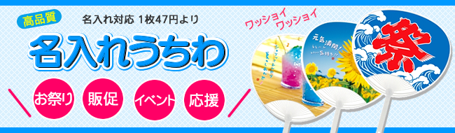 お祭り・応援・販促・イベントなど、広告効果が高く多くの方に親しまれている「名入れうちわ」。2015年の今年も準備の季節がやって参りました。人気商品は毎年6月下旬より順次完売となる見込み、お早目にご検討のうえ夏を盛り上げていきましょう。6月10日までのご注文で送料無料