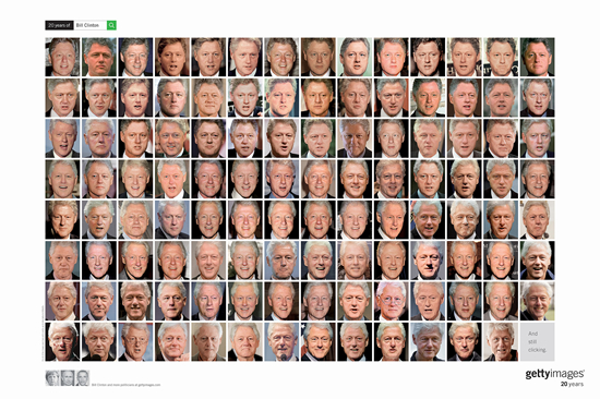 画像データベースとして有名なゲッティイメージズが、20周年記念としてグローバルキャンペーンを展開。クリントン元大統領やイギリスのウィリアム王子など、世界的セレブの顔写真を歴史になぞらえ公開しています。エージェントはAlmapBBDO(ブラジル)。