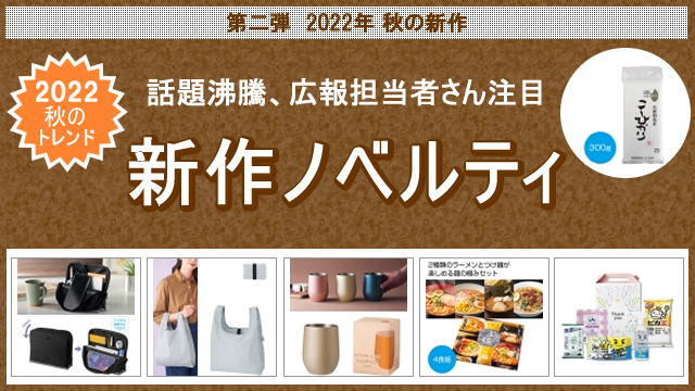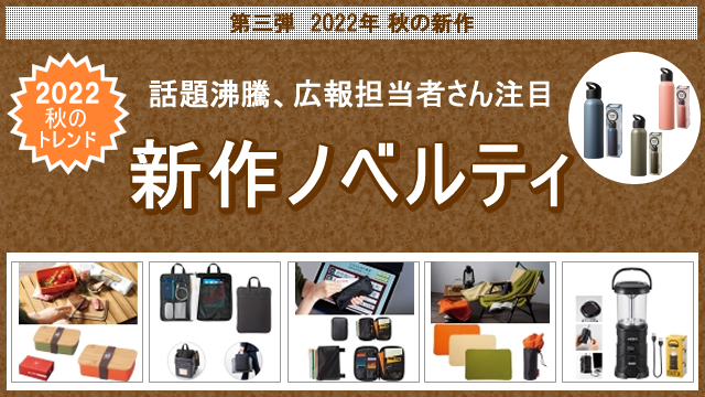 2022年秋の第二弾新作ノベルティは秋に大活躍で防災用品としても使えるアウトドア用品、食品ギフトがバラエティ豊かに追加されました。販促シーズンの秋に向けてノベルティに、記念品に、物販品にぜひご提案ください。