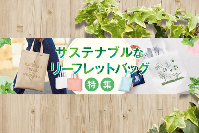 展示会・セミナー・オープンキャンパスなどへのご提案に、例年、リーフレットバッグ(チラシ・カタログなどの配布用バッグ)が人気です。企業イメージ向上にもつながるサステナブル素材バッグをぜひご提案下さい。