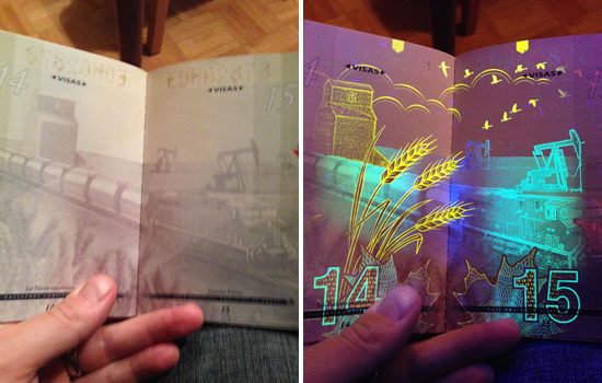 2013年の夏頃から採用されているというカナダ政府発行の新パスポート。このパスポートに施された仕掛けがクール過ぎると、ネットユーザーの間で話題になっています。開いたページをUV光(ブラックライト)で照らせば・・・遊び心があってとてもユニークです。