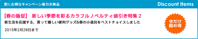 販促ノベルティ卸売りセンターでは、通常の卸売価格よりも更にお得な!値引きキャンペーンを期間限定で開催いたします。是非、お得なこの機会に名入れノベルティをご検討ください。皆様のご利用をお待ちしています。お得な期間は2015年2月28日まで。