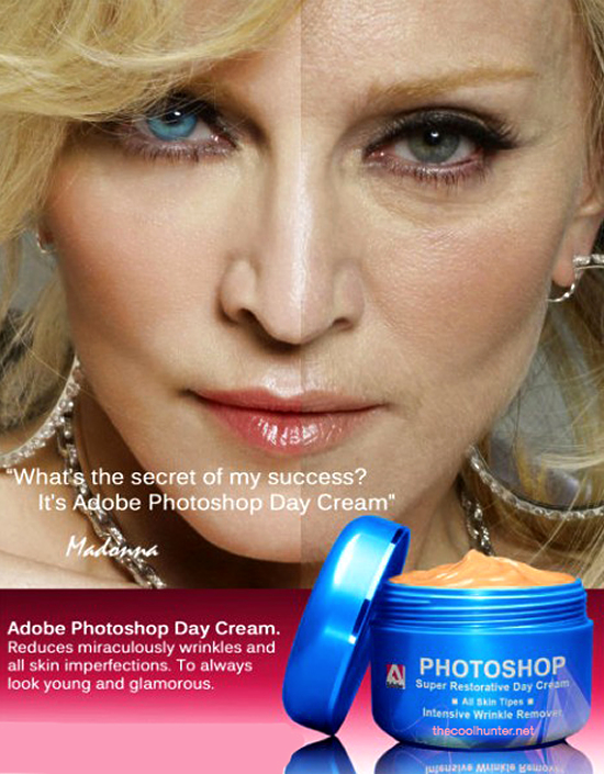 実用的な広告から、ネタっぽいものまで。面白いアイデアが盛り込まれたユニークな屋外広告を集めてみました。トピック:画像編集ソフトの販促用ポスター。マドンナの成功の秘訣?それはフォトショップ(デイクリーム)www 強烈なインパクトです。<米国>