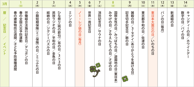 2015年3月の前半に実施される国民的イベントや記念日を調べてみました。企業、店舗、自治体の集客プロモーションや販促キャンペーンに記念日を活用しましょう。ひな祭り、入学&新生活準備。市場が活発な年度末を狙ってSP大作戦!
