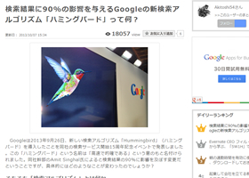 広報マーケティング担当者さんやWEB担当者さんにオススメしたい、今週の注目エントリーをまとめてご紹介。トピック:検索結果に90%の影響を与えるGoogleの新検索アルゴリズム「ハミングバード」って何?