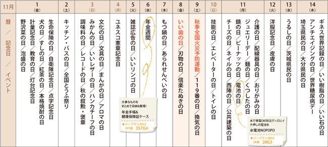 来月の記念日を調べてみました<2013年11月前半>