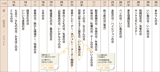 来月の記念日を調べてみました<2013年11月後半>