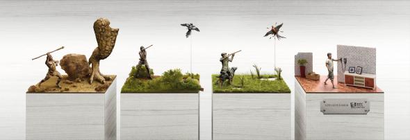 実用的な広告から、ネタっぽいものまで。面白いアイデアが盛り込まれたユニークな屋外広告と野外看板を集めてみました。トピック:KFCのミニチュア展示広告。太古は狩猟、吹き矢からライフルに移り変わり、そして現在は電話でデリバリー。チキンを手に入れる方法ですね。≪シンガポール≫